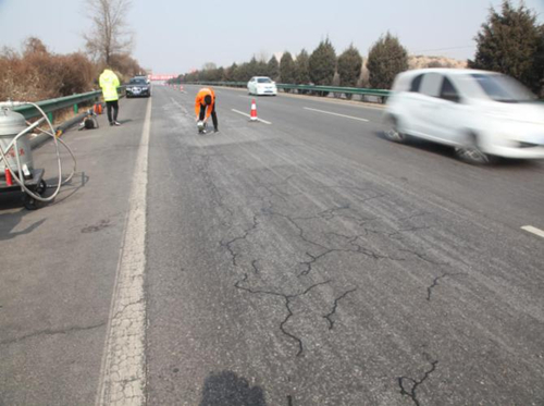 封閉交通,檢查材料性能是否合格,各種設(shè)備機(jī)具是否完備且保持良好工作狀態(tài)。對(duì)裂縫進(jìn)行統(tǒng)計(jì)、定位。