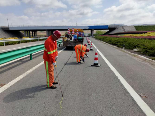 裂縫邊緣有破損等現(xiàn)象時(shí)進(jìn)行擴(kuò)縫處理 專用吹縫設(shè)備吹縫清縫