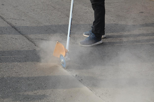 3.擴(kuò)縫,對(duì)于 3mm 以下的裂縫,使用RB-350擴(kuò)縫機(jī),沿裂縫走向,依據(jù)裂縫的寬度和深度,在裂縫兩側(cè)壁切割擴(kuò)縫寬度一般為 4-8mm,擴(kuò)縫深度為 3-6mm。由于原路面老化等原因不宜擴(kuò)縫的,可不擴(kuò)縫。