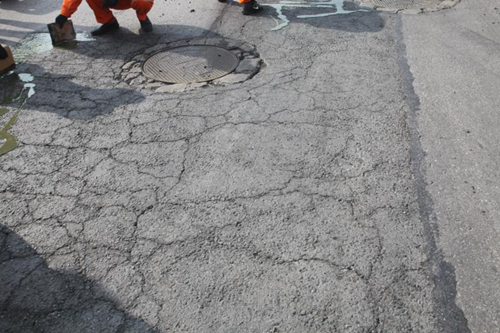 4.對(duì)由于灌縫膠快速快速滲透所出現(xiàn)的未完全填滿的縫隙需要再次填縫,直至填滿為止。對(duì)較寬較深的裂縫,可在清理好的裂縫內(nèi)填充瀝青砂、石英砂等材料再進(jìn)行灌縫。