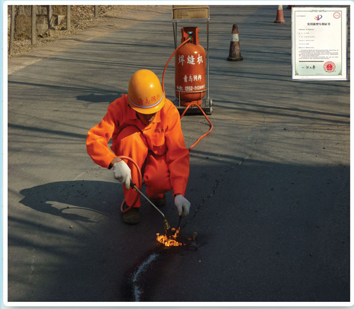 選擇RBS膠條式灌縫膠,將膠條插入火槍口中,對準裂縫,迅速融入裂縫中。