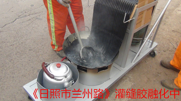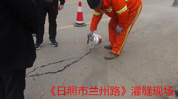 3、將熔化好的灌縫膠立即倒入鐵壺中,隨之灌注到裂縫中,10分鐘后可開放交通。